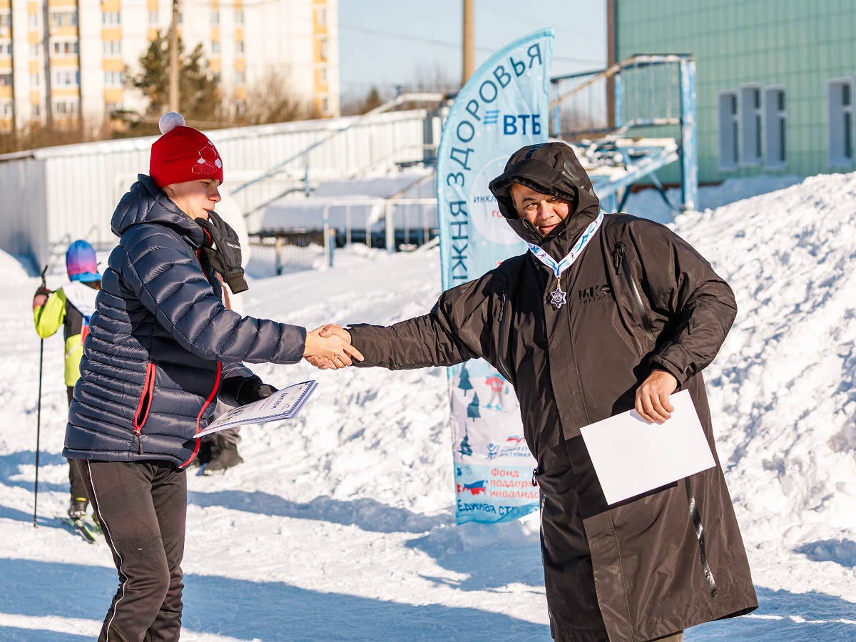 На свежем морозном воздухе дети с успехом преодолели дистанции в 500 и 1000 метров. Болельщики громко поддерживали каждого участника, создавая по‑настоящему праздничную атмосферу! Ребят на финише встречали молодые паралимпийцы, кандидаты в мастера спорта по лыжным гонкам, призёры первенств России по лыжным гонкам и биатлону Егор Еремеев и Владислав Карягин. Из их рук каждый юный спортсмен получал символическую медаль, которая вместе с призами всем им принесла массу положительных эмоций.