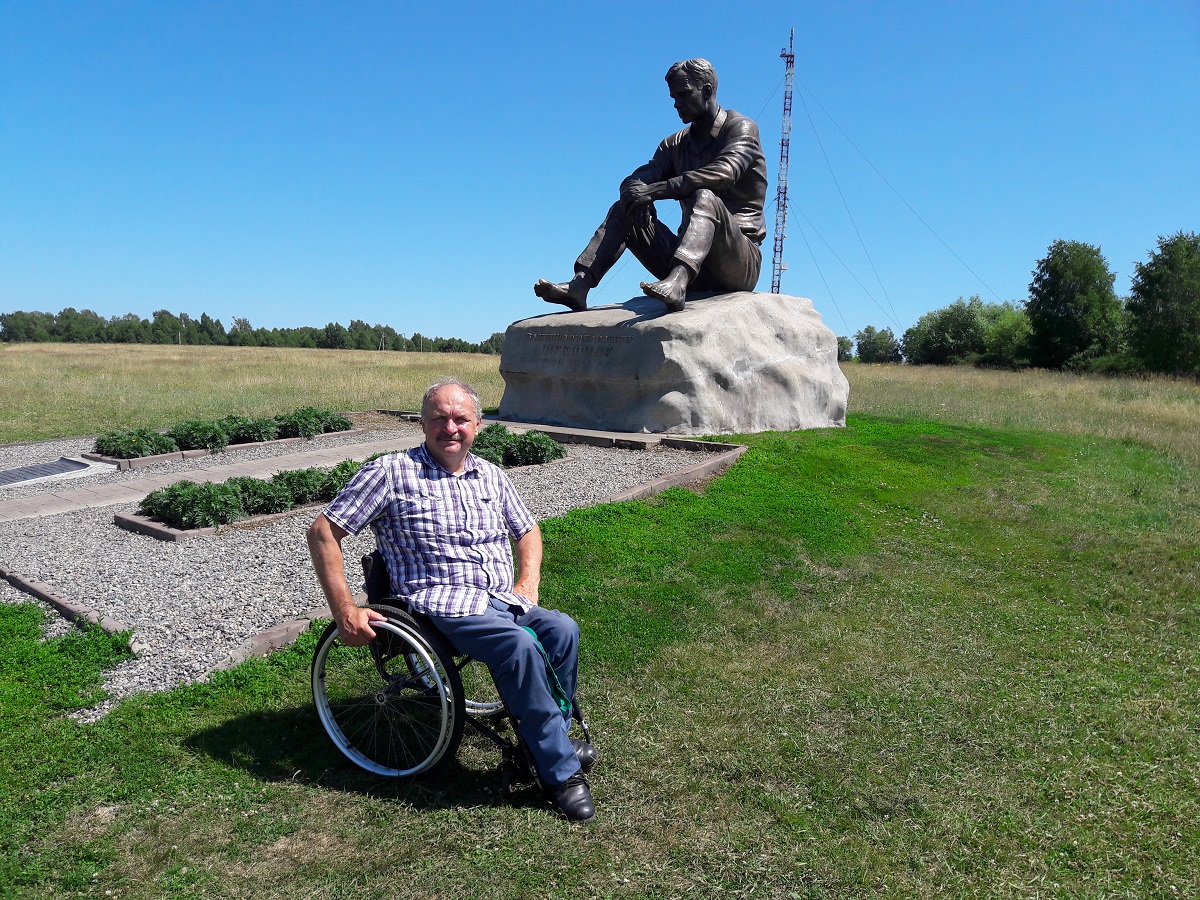 На обратном пути, когда мчались на такси на железнодорожный вокзал Бийска, все-таки заехали в родное село Шукшина. Удивился, что в одном из зданий музея – деревянной школе, где учился прославленный кинематографист и писатель, есть пандус. Но зайти во внутрь мы не смогли: в тот день полы были покрашены. А вот к бронзовому памятнику сидящего на валуне босого Шукшина на горе Пикет дойти немудрено: к нему ведет естественный пандус – пологая твердая грунтовая дорожка с травами и цветами по бокам. Природа постаралась. И туристы, которые практически беспрерывным потоком идут поклониться гению алтайской земли, утоптали тропу к памятнику почти до асфальтовой твердости. Не зарастет она, похоже, никогда.